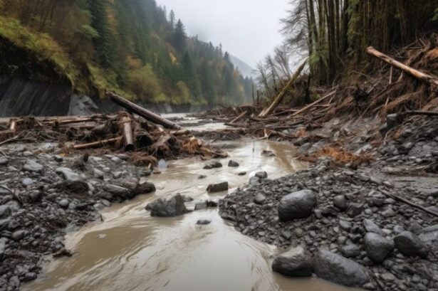 両側を急な斜面に挟まれたような川沿いや山間部では、崖崩れや落石にも注意が必要だ。