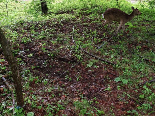 プログラムでは罠猟による鹿の捕獲の実際を見学・サポートして頂き、免許を持ったベテランのハンターのガイドの下、捕殺から搬出、解体までを行います。